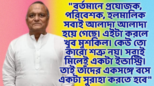 এক্ষেত্রে অবশ্য অঞ্জনের বক্তব্য, “বর্তমানে প্রযোজক, পরিবেশক, হলমালিক সবাই আলাদা আলাদা হয়ে গেছে। এইটা করলে খুব মুশকিল। কেউ তো কারো শত্রু নয়। সবাই মিলেই একটা ইন্ডাস্ট্রি তাই তাঁদের একসঙ্গে বসে একটা সুরাহা করতে হবে। প্রয়োজনে বাংলা ছবির টিকিটের দাম কমাতে পারলে আখেরে ইন্ডাস্ট্রির আরও বেশি লাভ। একজন অর্থবান আর একজন যদি অভাবী হয় তাতে লাভ হয় না। তাই সবাই মিলে আলোচনা করে আমরা যদি দর্শককে হলে টেনে আনতে পারি তাহলে সেইটাই হবে ঠিক মত কাজ। আপাতত যে পদক্ষেপ নেওয়া হয়েছে সেটা প্রযোজক বা হলমালিকদের জন্য ভাল। কিন্তু আমার মতে এই মুহূর্তে বাংলা ছবিতে দর্শকের লাভের কথা আগে ভাবতে হবে। যাঁদের জন্য আমরা ছবি করছি তাঁদের কাছে এই লাভটা পৌঁছে দিতে হবে। তাই আমার প্রস্তাব থাকবে যে অন্ততপক্ষে বাংলা ছবির ক্ষেত্রে যদি টিকিটের মূল্য নিয়ে ভাবনা চিন্তা করা যায় তাহলে আমরা আরেকটুখানি এগিয়ে যেতে পারব।”